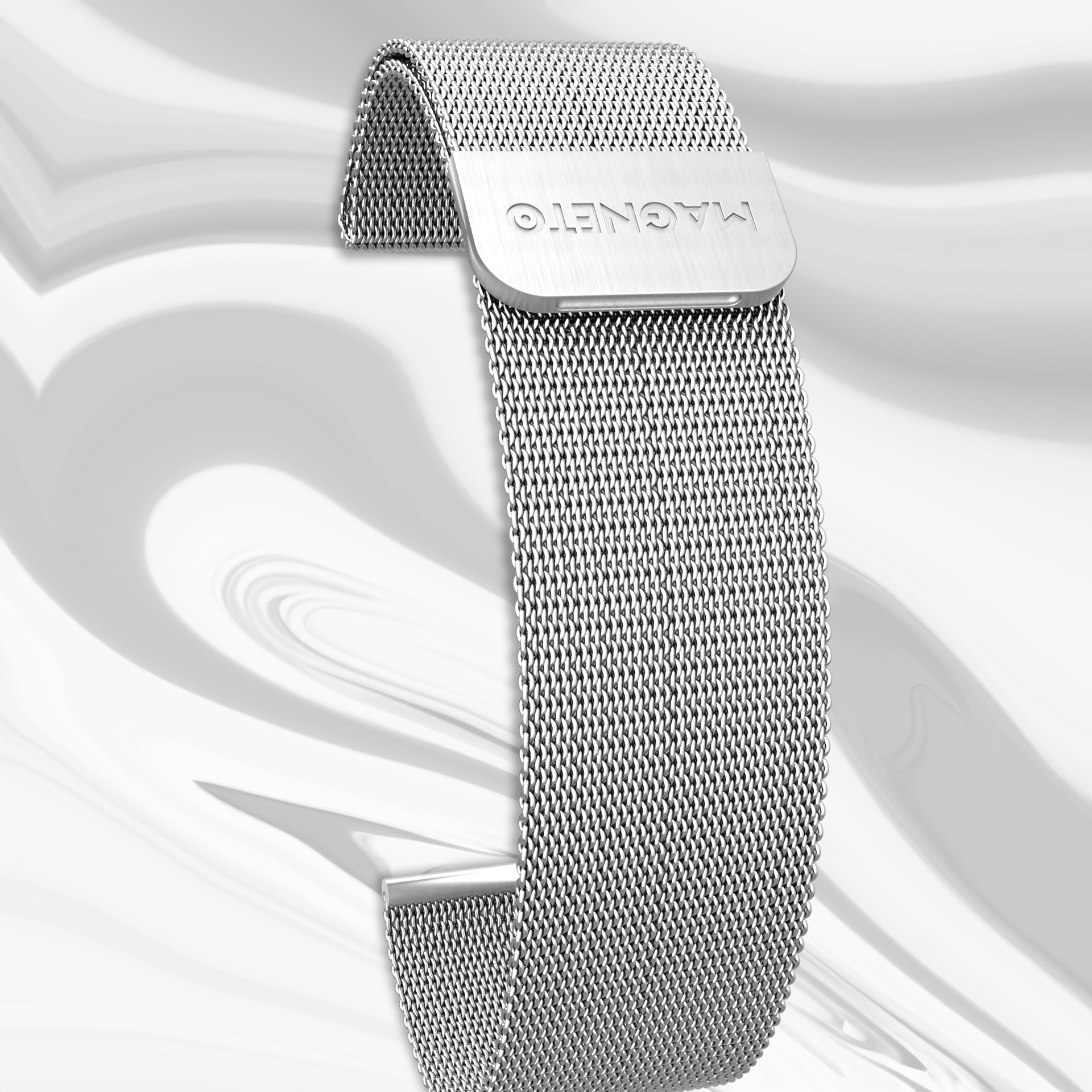 A real all-rounder - the silver mesh band with magnetic buckle is pretty stylish and, thanks to the stepless adjustment mechanism, also super practical.